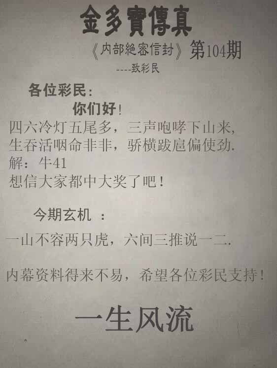 | 主题 :104期:金多寶傳真 |