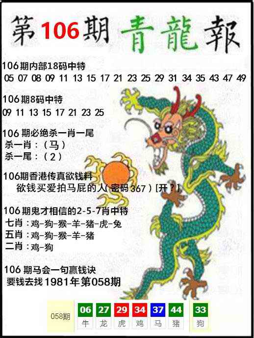 | 主题 :106期:青龙报 |