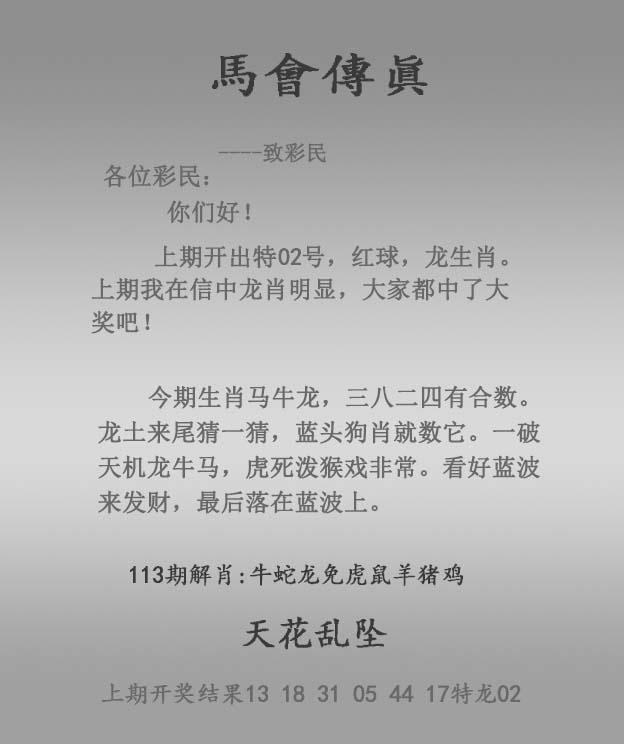 | 主题 :113期:正马会传真 |
