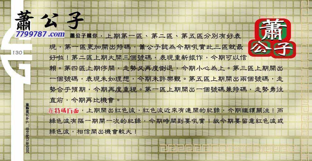 | 主题 :130期:六合皇金句/老总论码/萧公子/林大师/五行夺码/老总信箱截 |