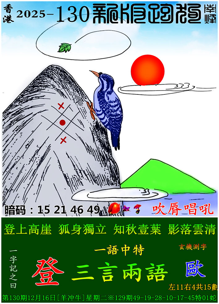 130期新版跑狗一字記之曰:【登】
