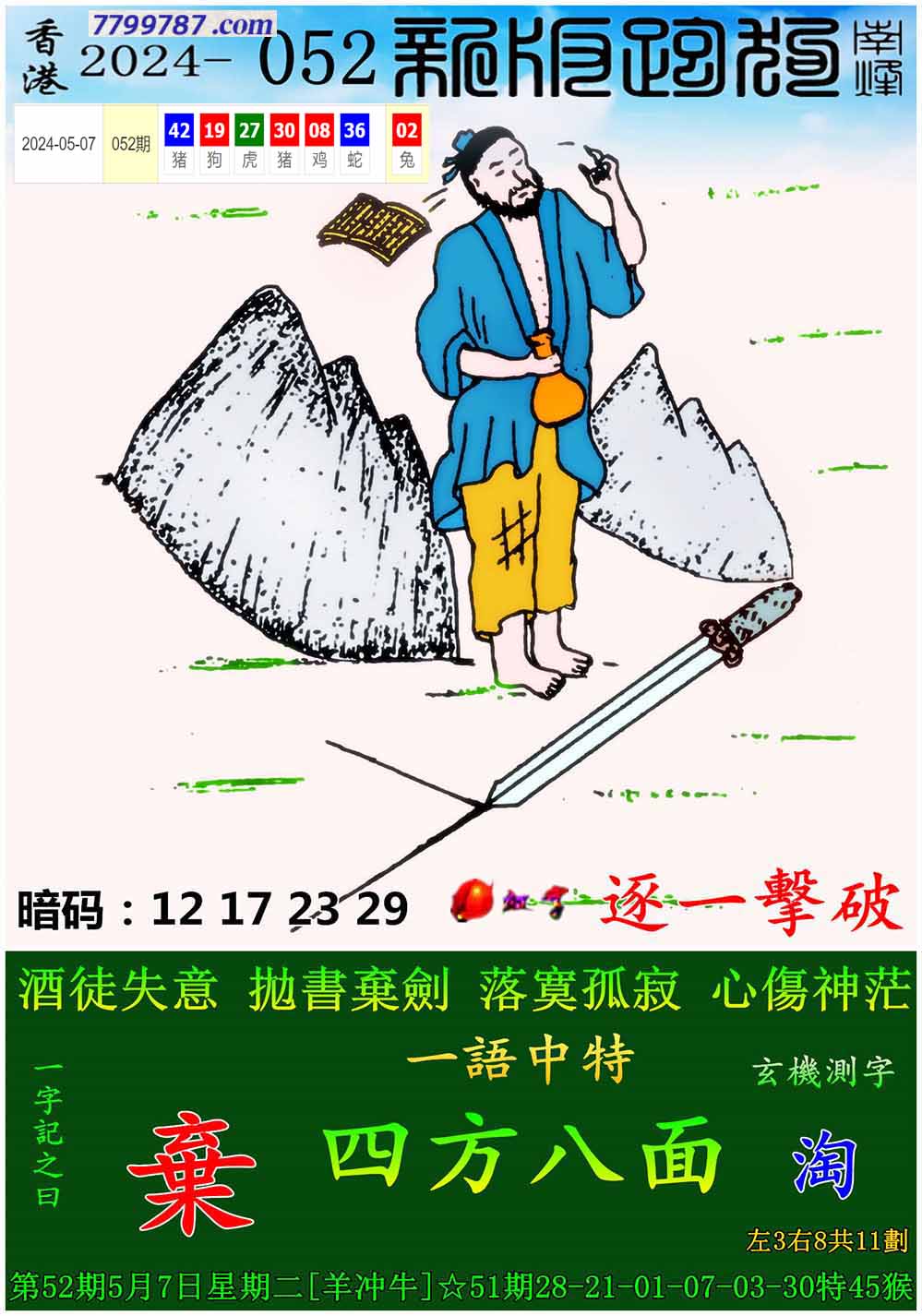 017期:新版跑狗一字記之曰【拋】 玄機測字:【縝】
